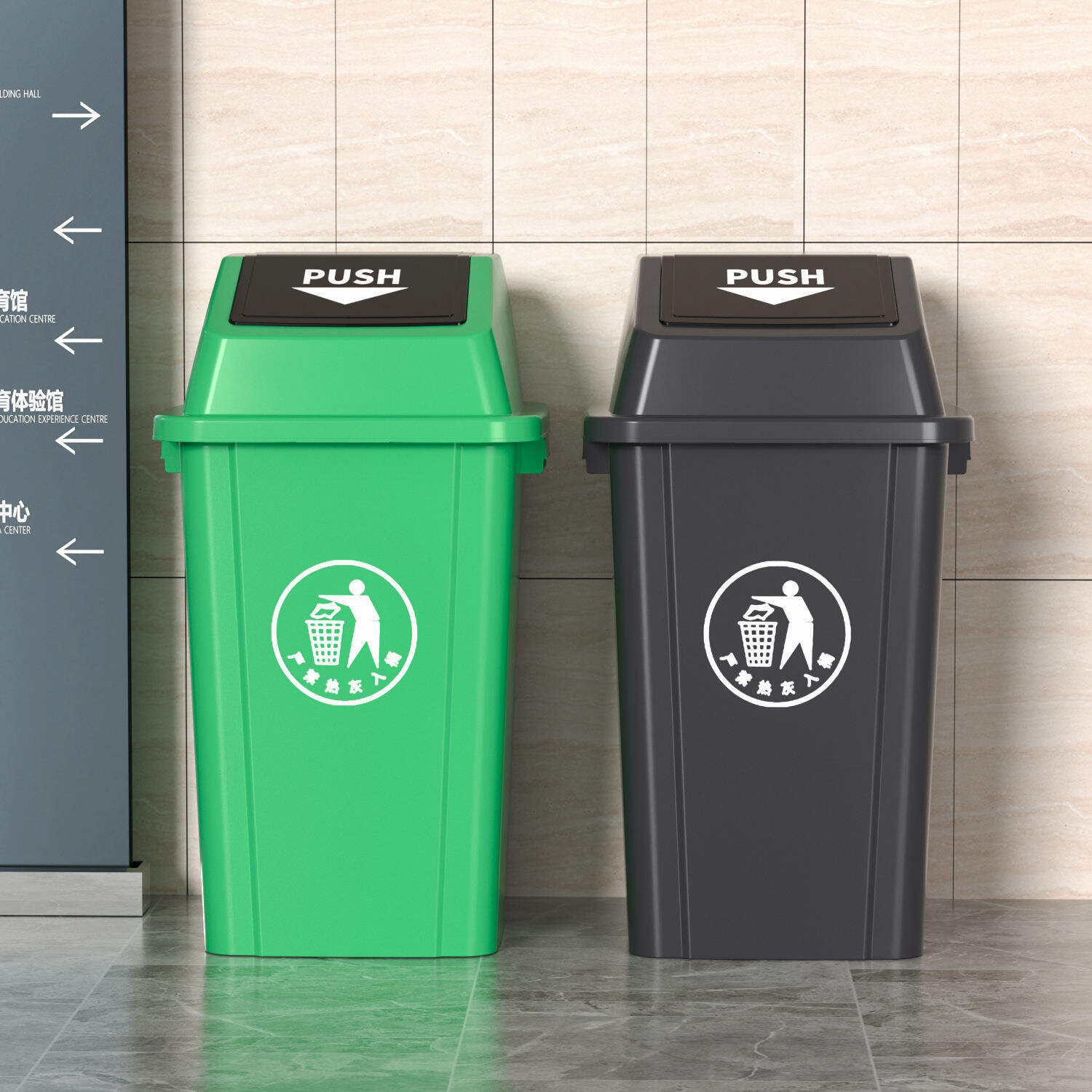 Crafted from high-density polyethylene (HDPE) using a one-piece molding process, the bin is built to withstand the harshest conditions of public use. Its robust construction resists impacts, scratches, and corrosion, making it impervious to accidental knocks from pedestrians, weather exposure, and rigorous cleaning with industrial-grade detergents. The HDPE material is also temperature-resistant, maintaining its structural integrity in extreme heat or cold, which makes it suitable for both indoor and outdoor deployment. Unlike thin, flimsy bins that crack or warp after months of use, this HDPE construction ensures long-term stability, even in environments where heavy use and exposure to the elements are constant. The swing-lid design is a key feature, enabling contact-free disposal with a simple nudge of the elbow or forearm—critical for maintaining hygiene in public spaces where multiple users handle the bin daily. The lid automatically rebounds to create a tight, airtight seal that effectively blocks odors from escaping and prevents mosquitoes, flies, and other pests from accessing waste, ensuring public areas remain fresh, hygienic, and free of insect infestations.